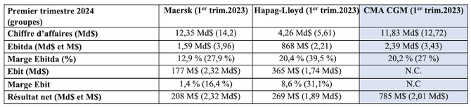 La chute depuis les sommets est la même pour les premières lignes du marché mondial mais elle est plus contenue pour la compagnie de Marseille sur la plupart de ses indicateurs : son chiffre d’affaires a baissé dans un rapport qui s’exprime en millions de dollars (- 890 M$ par rapport au premier trimestre 2023) quand l’entreprise de Copenhague y laisse des milliards (- 1,9 Md$) bien que les revenus commerciaux soient dans des niveaux comparables (12,3 Md$ pour le Danois, 11,83 Md$ pour le Français).