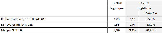 Résultats de l’activité logistique au troisième trimestre