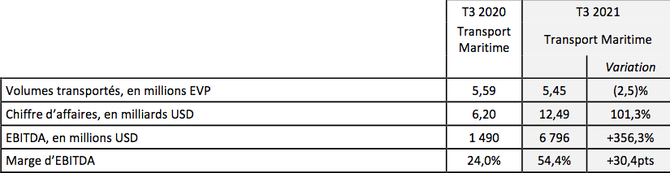 Résultats de l’activité maritime au troisième trimestre 2021
