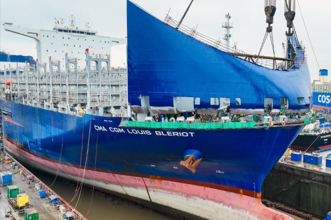 CMA CGM a aussi profité du passage en cale sèche pour équiper certains de ses porte-conteneurs, à l'instar du Marco Polo, ou en février de cette année, le CMA CGM Louis Blériot (20 954 EVP) en entretien chez Cosco Heavy Industry. Le groupe français prévoit également d’en intégrer dès la construction. Un plus de 200 M$ ont été budgétés par le groupe sur 10 ans pour équiper ses navires de déflecteurs, d'étraves à bulbe et d'hélices.