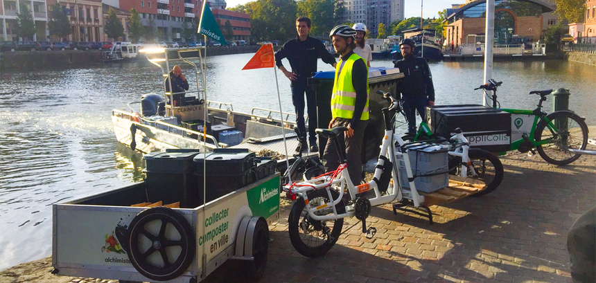 Des navettes fluviales de logistique urbaine sur le canal du Midi ? Un pari devenu techniquement possible dans l’agglomération de Toulouse. Dans la ligne des grandes métropoles fluviales qui s’arment en logistique fluviale pour alimenter les hypercentres, la ville occitane avance à petits pas. En portant un regard neuf sur son canal historique, Toulouse réinvente, entre trois écluses, le transport urbain avec des acteurs de l’économie sociale et solidaire. En mode coopératif, trois entreprises viennent de conclure un mois de test de logistique fluviale avec le soutien financier de VNF. Au rythme de deux voyages par semaine, un bateau a chargé entre deux et trois cents kilos de marchandises (champignons, plats à emporter, des pousses végétales, fromages) en provenance du MIN et stockées dans un conteneur sur les quais de Midinet. Direction le centre-ville où en deux points de déchargements, elles ont été livrées par vélos-cargos vers des commerces. Compost, papier et cartons collectés dans les entreprises ont rempli le bateau le retour. Près de 300 points de livraisons ont été livrés tout le mois d’octobre 2021. Applicolis, Les Alchimistes et Greenburo ont éprouvé grandeur nature la possibilité d’inclure le fluvial dans leur trajet quotidien. Ils en dressent aujourd’hui le bilan. Respectivement livreur de colis, composteur et récupérateur de biodéchets, et déchets, ces spécialistes de la logistique ont évalué les contraintes techniques du transport fluvial : synchronisation, temps, conditions de navigation. « Nous avons pu gagner une heure par voyage et pu collecter davantage », commente Louis Latapie, co-gérant de Greenburo. Même constat pour Vincent Monteil, gérant d’Applicolis, pour qui le fluvial permettrait de multiplier les livraisons : « En logistique, le temps coûte le plus cher. On a compris qu’une attention particulière sur les ruptures de charges devra être déployée. Il manque aujourd’hui des zones tampons et des quais aménagés avec du matériel de transbordement, grue et rampes ». Le logisticien évoque aussi les horaires des trois écluses à adapter au rythme du fret. « Si nous avons pu démontrer l’intérêt du fluvial pour l’environnement et la logistique, il nous reste à trouver un modèle économique intéressant » reprend Louis Latapie. Greenburo, une Scop d’insertion en pleine croissance, collecte entre 200 et 300 tonnes de cartons par mois. Sans stockage au centre-ville, l’effort fluvial sera vain pour ces volumes. Ils attendent le prochain appel à projets de VNF pour une logistique urbaine sur les quais de Lalande, « et se greffer sur des plus gros . Il nous manque encore trop d’éléments pour voir plus loin : fréquence des navettes, coûts, stockages etc. », conclut Louis Latapie.